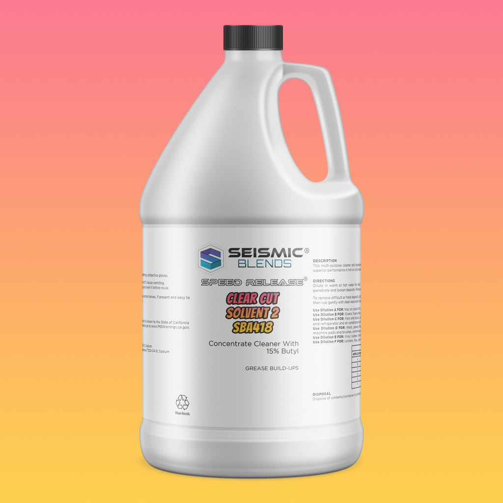 Speed Release Clear Cut Solvent 2 is a versatile, water-soluble cleaner and degreaser that contains 15% butyl combined with special detergents to provide superior performance in hot or cold water. It instantly dissolves heavy dirt, grime, oil, and grease deposits, making it an essential cleaning solution for a variety of industrial and commercial applications.